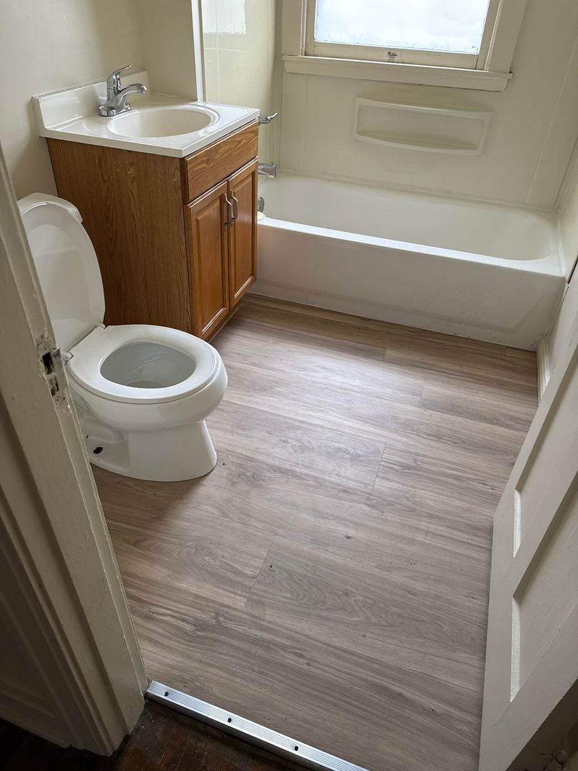 Step into this inviting 3-bedroom, 1-bathroom half duplex that blends classic charm with modern convenience. Featuring wood floors and trim throughout, this home radiates warmth and character. The living areas are complemented by a hallway linen closet for extra storage, while the full bathroom includes a tub for relaxing soaks.